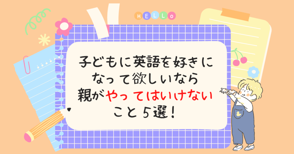 子どもに英語を好きになってほしいけど、自分は英語が苦手だし・・・。 子どもが英語を話せるようになったという記事を読むけど、「親はTOEIC900点!」とか英語が得意な人ばかり・・・。 そんなふうに悩んでいる親御さんもいるのではないでしょうか? ... 未分類英語が苦手な親でも大丈夫!子どもが英語を話したくなる声かけのコツ